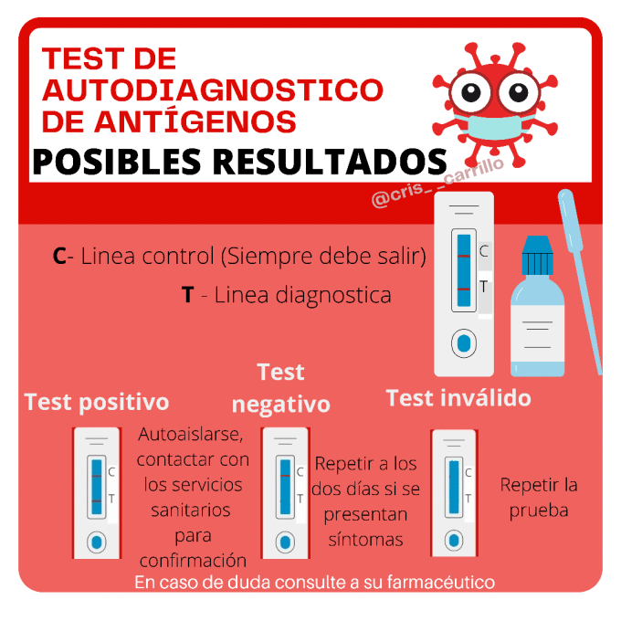 En estos test hay dos tipos de líneas, la de control, que siempre debe aparecer si se ha realizado correctamente y la del test, que en caso de ser positivo marcará también. En el caso de no aparecer ninguna, es necesario siempre repetir el test siguiendo bien las instrucciones de uso del fabricante.