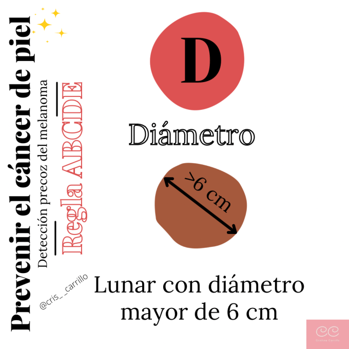 D, diámetro. Los lunares con más de 6 cm de diámetro deben tener un seguimiento.