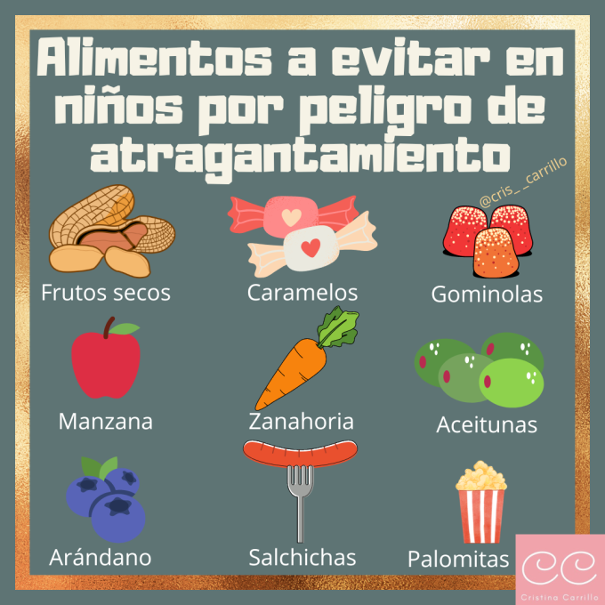 - Evitar frutos secos y otros alimentos peligrosos en niños menores de 5 años.