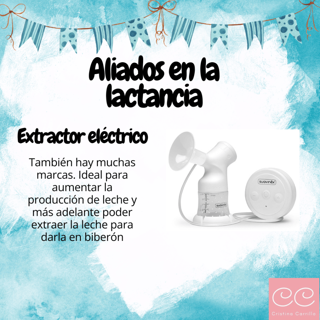 Extractor eléctrico. Existen también muchas marcas. Es una herramienta ideal para aumentar la producción de leche y más adelante, poder extraerse la leche para darla en el biberón.