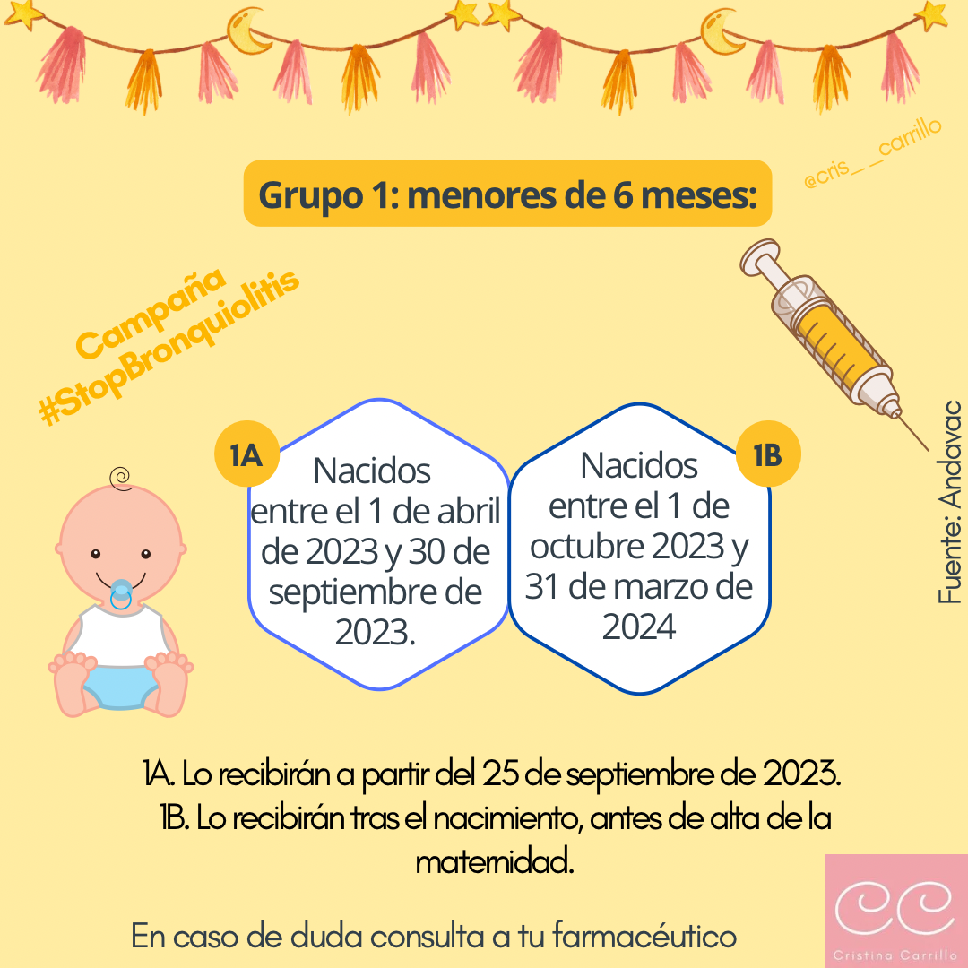 -Subgrupo 1A: nacidos entre el 1 de abril de 2023 y 30 de septiembre de 2023. Los padres o tutores legales serán avisados para recibir el fármaco en atención primaria a partir del 25 de septiembre de 2023.