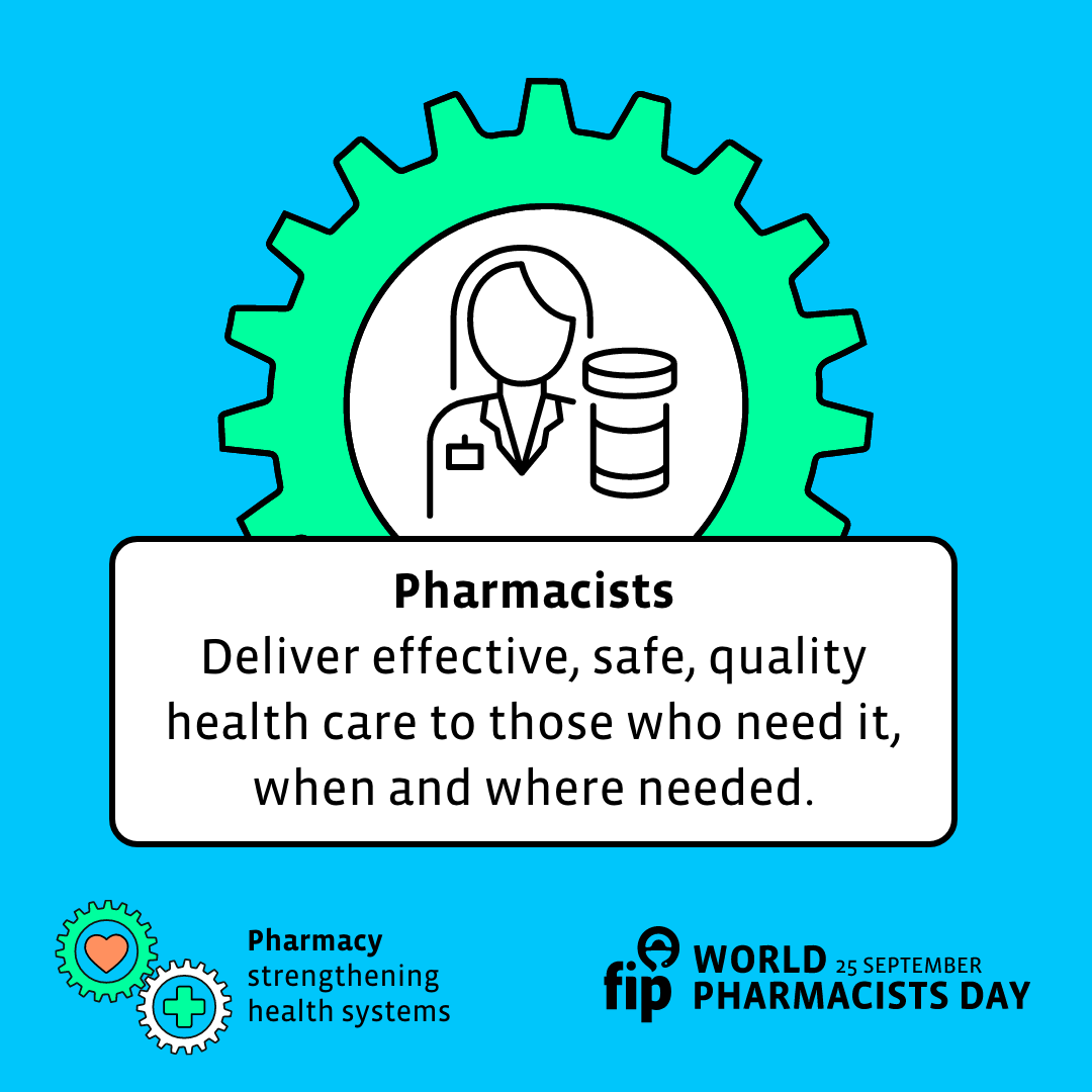 El lema de este año es «Fortaleciendo los sistemas sanitarios con los farmacéuticos». Con cualquier especialidad, todos los farmacéuticos nos unimos este día para celebrar la labor sanitaria que realizamos.