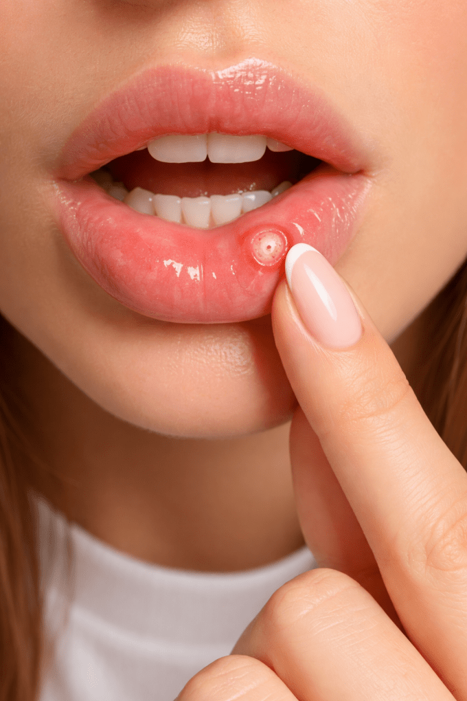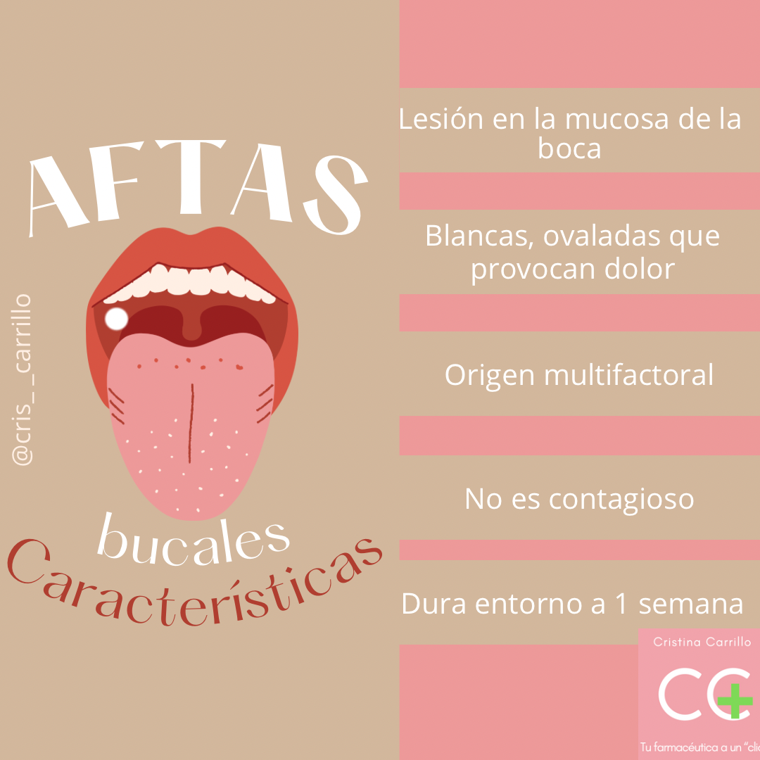 Las aftas bucales son lesiones benignas en la mucosa de la boca, suelen ser blancas ovaladas y cursan con dolor, provocando un gran malestar, especialmente en las comidas. Es importante diferenciarlas de otra patología bucal, el herpes labial, cuyo origen es el virus herpes simple tipo 1.