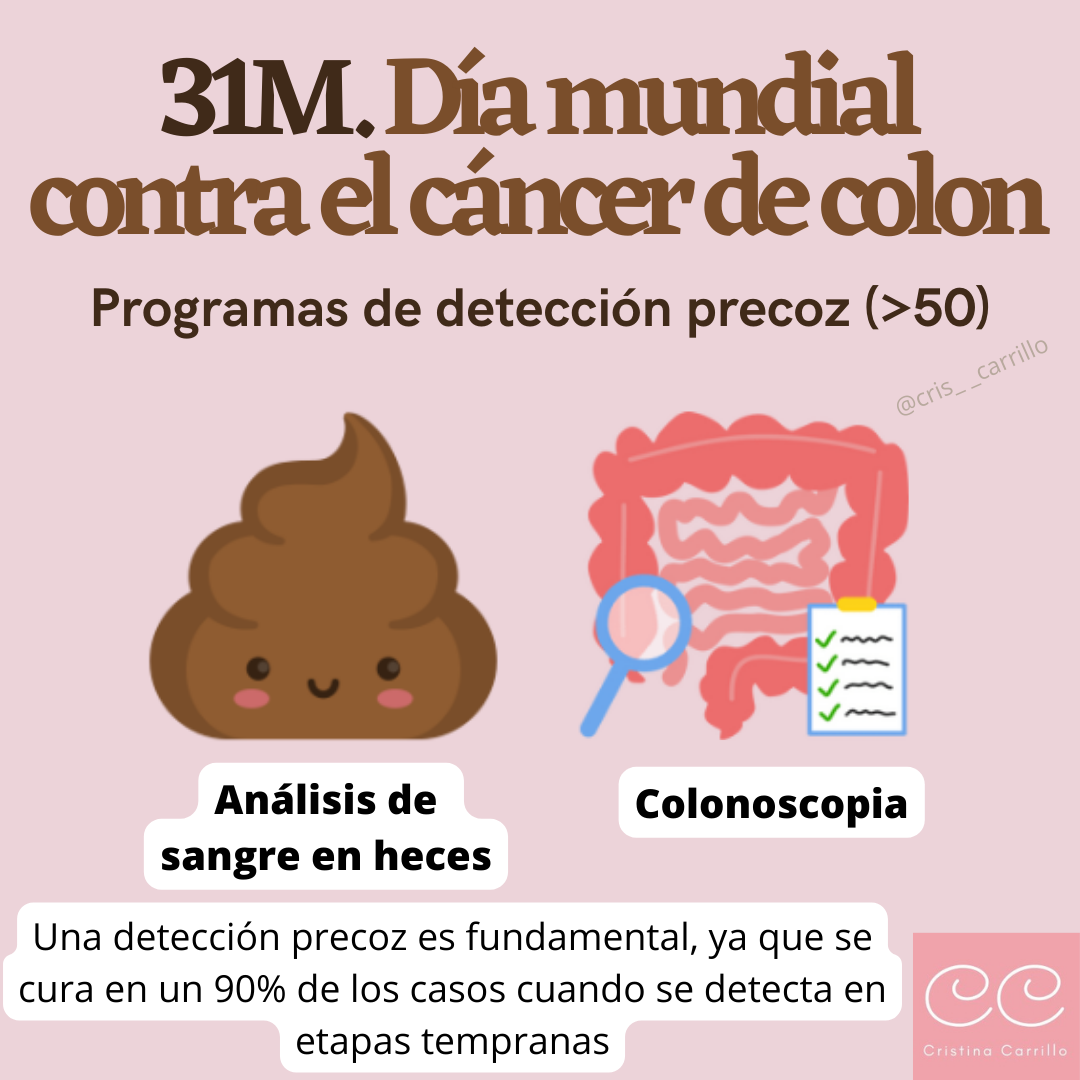 El cáncer de colon se localiza en la parte final del intestino. Es uno de los más frecuentes a partir de los 50 años. Cuando se detecta en etapas tempranas es curable en un 90% de los casos que se diagnostican, esto hace que sea muy importante los programas de detección precoz.