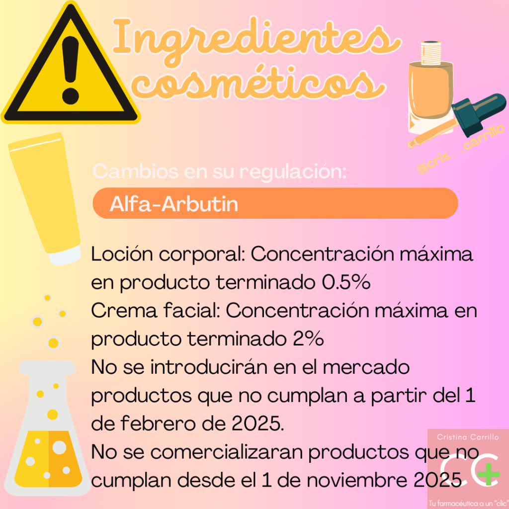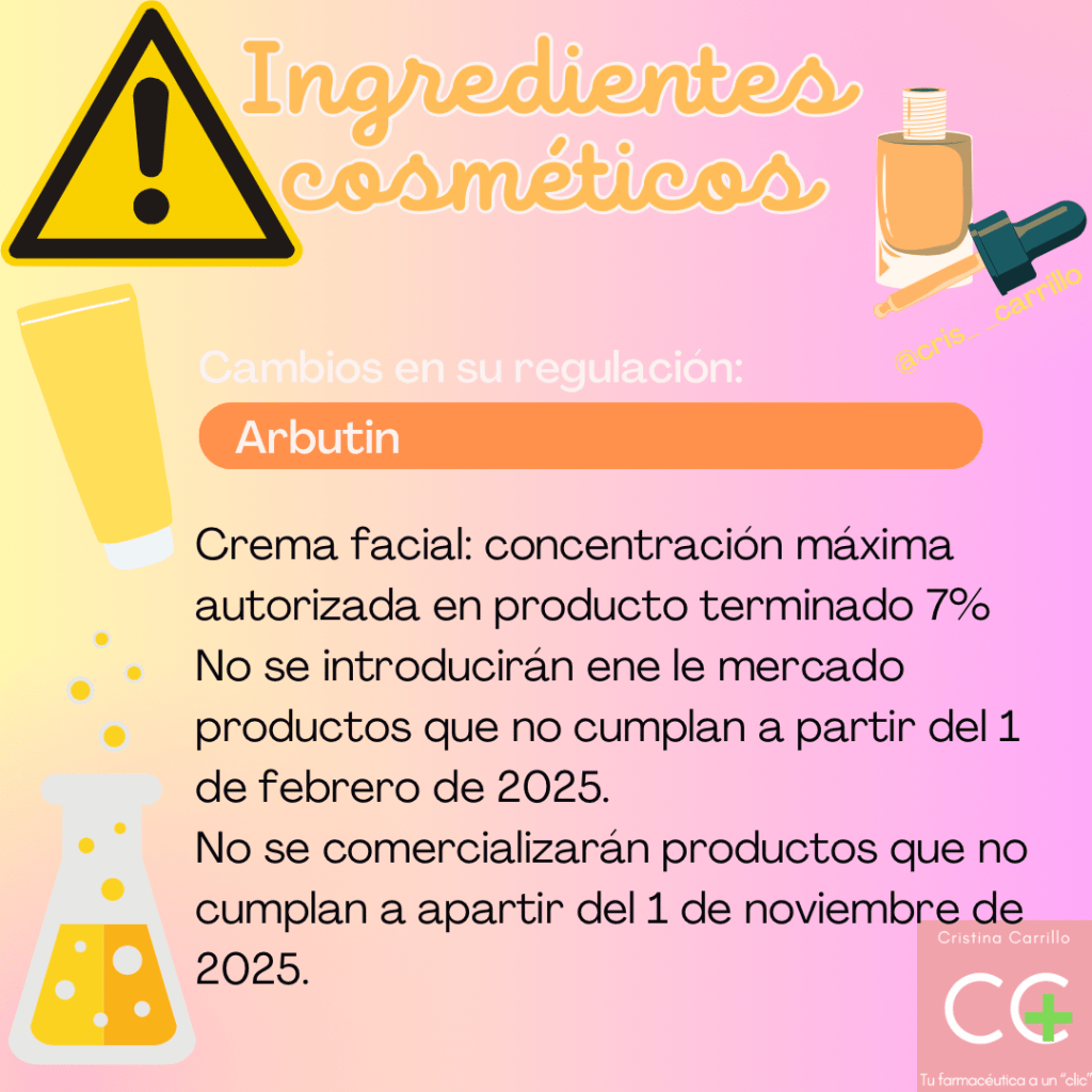 Arbutin. Crema facial: concentración máxima autorizada en producto terminado 7%.