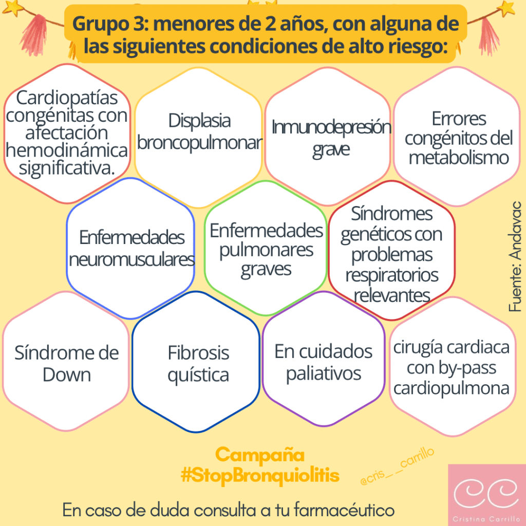 Por último, en el Grupo 3: los menores de 2 años, con alguna de las siguientes condiciones de alto riesgo: