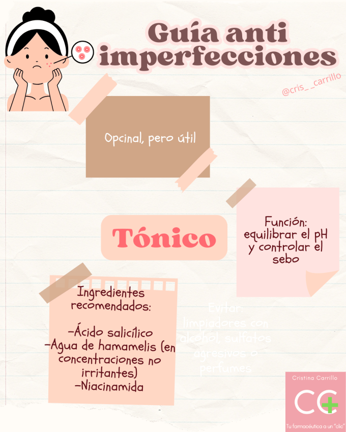 Un tónico suave puede ayudar a regular el pH, controlar el exceso de sebo y preparar la piel para los siguientes pasos. Evita los tónicos astringentes con alcohol.
