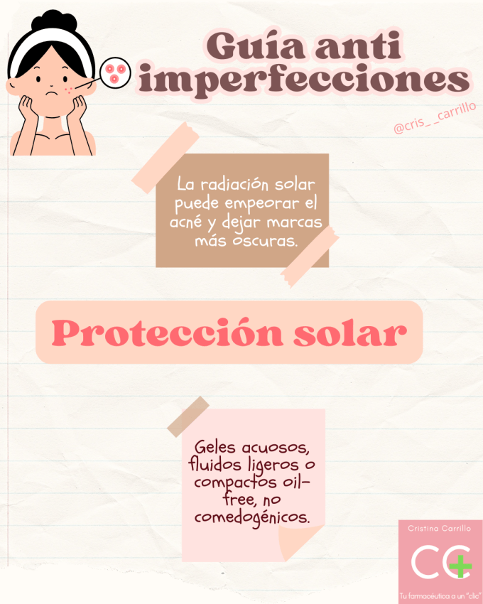 La exposición solar sin protección puede empeorar el acné, oscurecer marcas y acelerar el envejecimiento de la piel.